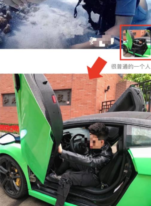 而再仔细看,A男头像是坐在绿色兰博基尼的车里,而C男的朋友圈里也出现了一辆重庆牌照兰博基尼!